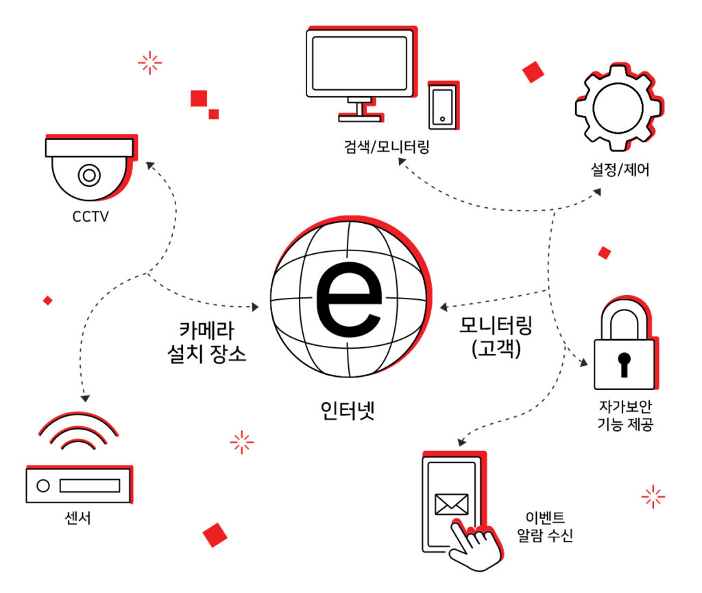네트워크를 활용한 PC/스마트폰 등 모니터링 제공 및 필요 시 저장/분석/인증 등 부가 서비스 제공으로
